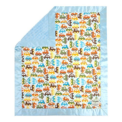 My Blankee Cars White Cotton Blanket Minky Dot Blue