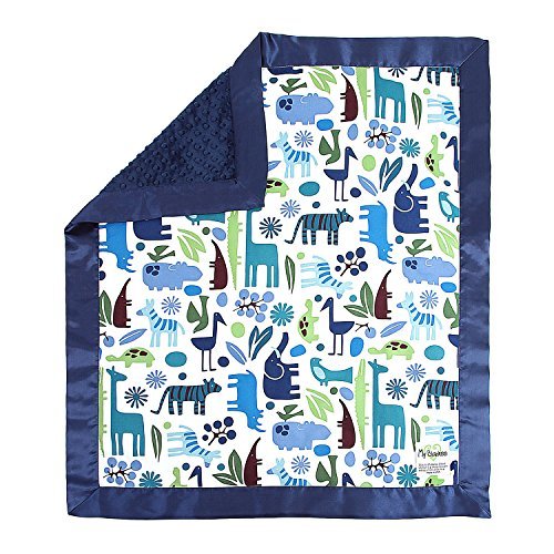 My Blankee Jumbo Zoo Blue Cotton Blanket with Minky Dot Navy [並行輸入品]