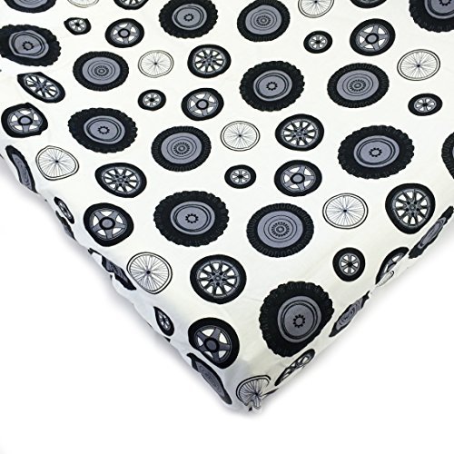 One Grace Place Teyo's Tires Crib Sheet Black White Grey (Discontinued by Manufacturer) [並行輸入品]