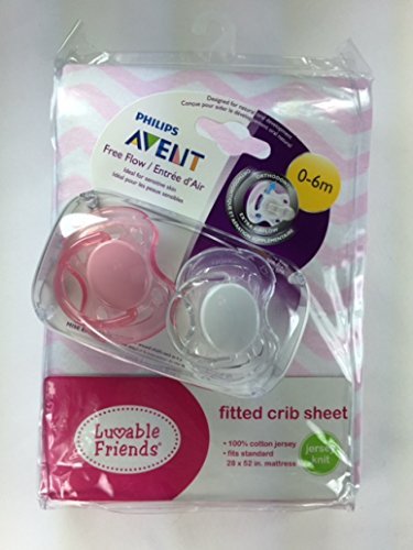 Baby Girl Gift Bundle - 2 Items: Luvable Friends Fitted Crib Sheet (Single) and Philips Avent Free Flow Silicone Pacifier (2 Pack).