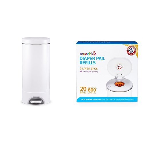 Munchkin Step Diaper Pail Powered by Arm & Hammer with Munchkin Arm & Hammer Diaper Pail Snap Seal and Toss Refill Bags