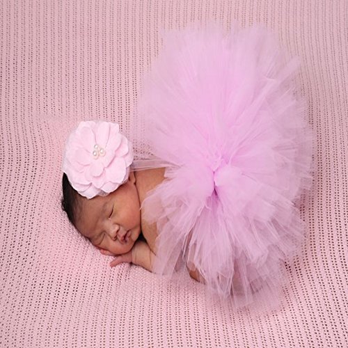 JISEN Baby Newborn Photography Prop Baby Girl Infant Lovely Costume TuTu Dress with Flower Headband 0-3 Months