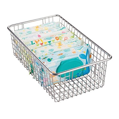 mDesign Baby Nursery Wire Storage Basket with Handles for Nursery Bedroom - Large Silver