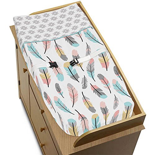 Sweet Jojo Designs Feather Collection Girls Baby Changing Pad Cover