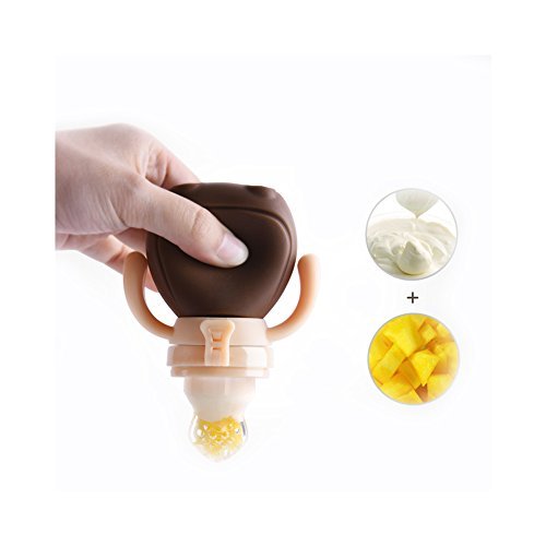 Huluwa Baby Food Feeder Baby Pacifier Infant Teething Toy Fresh Fruits Vegetable Teether Nibbler 2.5 Ounce Large Capacity Non Toxic Silicone Brown