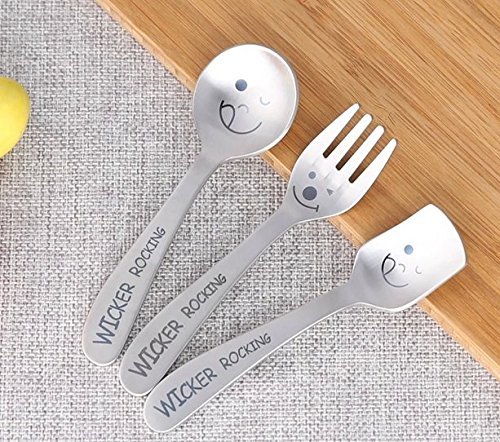 B&S FEEL Smiley Face Fork and Spoon Set Kids Stainless Steel Utensil Set of 3