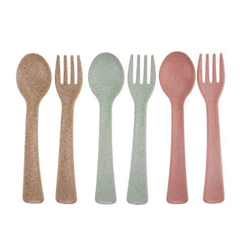 Travel Toddler Utensils Baby Training Forks & Spoons Set of 6 for Kids Self Feeding BPA Free Plastic