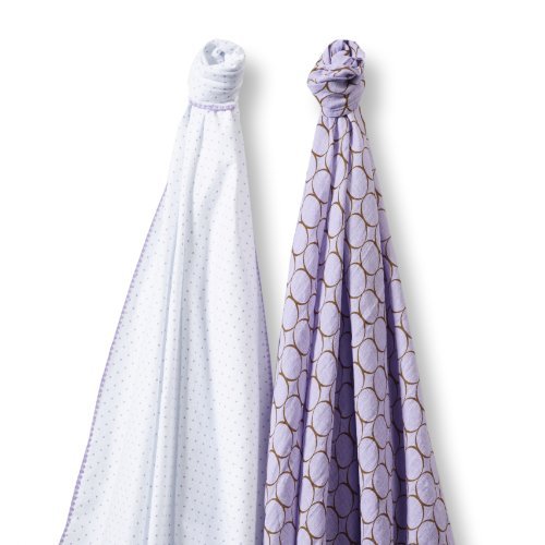 SwaddleDesigns SwaddleDuo Set of 2 Swaddling Blankets Cotton Muslin + Premium Cotton Flannel Mocha Mod Circles on Lavender Duo