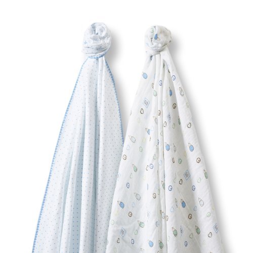 SwaddleDesigns SwaddleDuo Set of 2 Swaddling Blankets Cotton Muslin + Premium Cotton Flannel Blue Classic Peace Love Duo