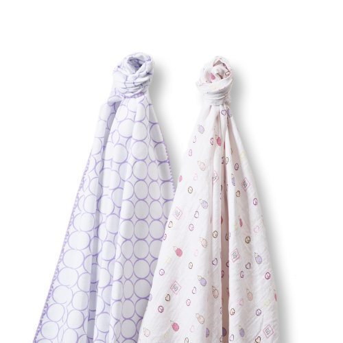 SwaddleDesigns SwaddleDuo Set of 2 Swaddling Blankets Cotton Muslin + Premium Cotton Flannel Lavender Mod Peace Love Duo
