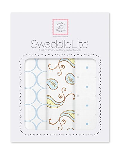 SwaddleDesigns SwaddleLite Set of 3 Marquisette Swaddle Blankets Premium Cotton Muslin Blue Paisley Lite