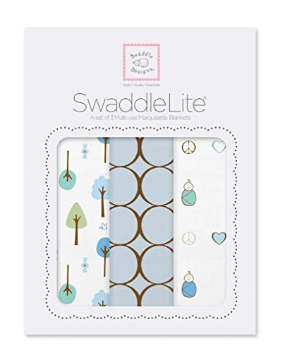 SwaddleDesigns SwaddleLite Set of 3 Marquisette Swaddle Blankets Premium Cotton Muslin Pastel Blue Cute and Calm Lite [並行輸入品]
