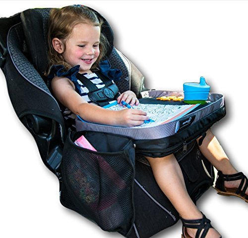 Kids E-Z Travel Lap Tray provides organized access to drawing snacks and activities for hours on-the-go. Includes BONUS printable travel games Patent Pending (Black)