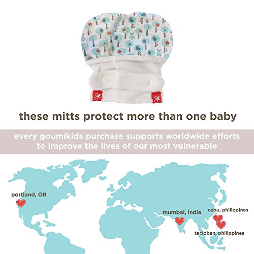GoumiKids有機ソフトStay OnユニセックスScratchベビーミトン – Stops傷や細菌Prevents Preemie GK1003