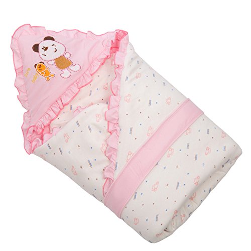 - ちょこんと付いたクマ耳が愛らしいべビーおくるみです。