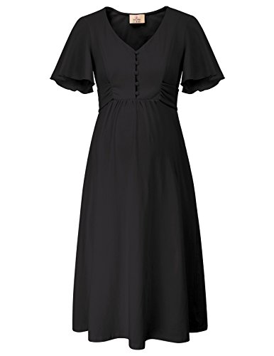 レディース マタニティ ワンピース マキシワンピ 産前産後 vネック スピーカースリーブ XL