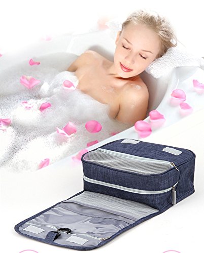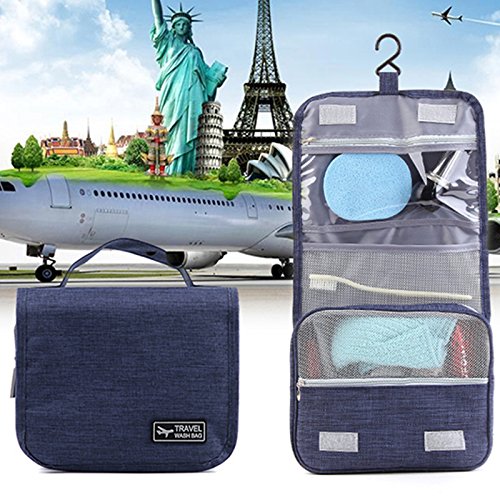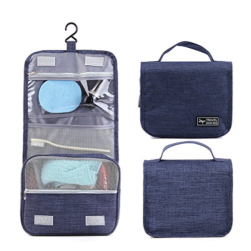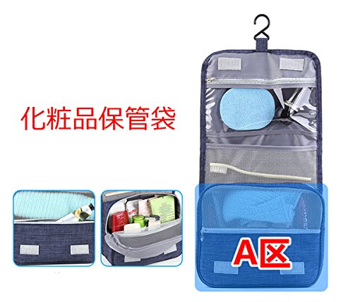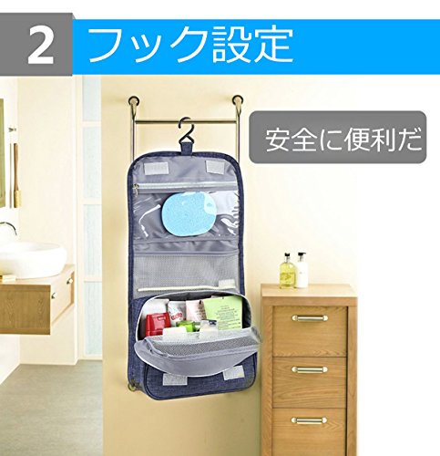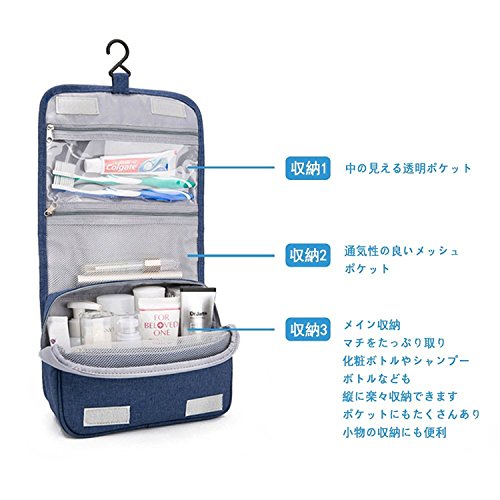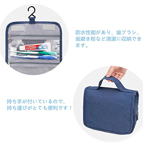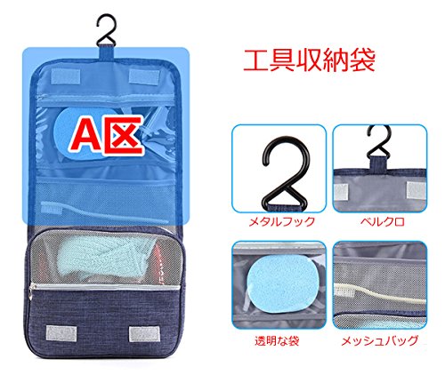 トラベルポーチ バスルームポーチ 吊り下げ フック付き 洗面用具入れ マジックテープ 収納バッグ コスメポーチ 旅行グッズ 化粧ポーチ 軽量 撥水加工 小物整理 旅行 出張 (靑い)