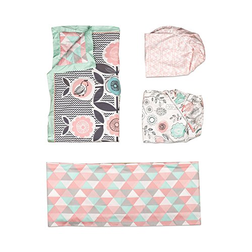 Lolli Living Sparrow 4 Piece Crib Set, Grey/Pink/Turquoise/White
