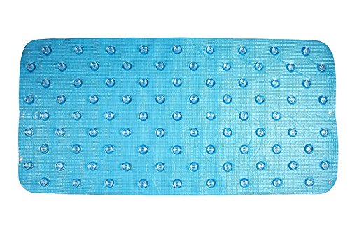 Color:Blue Graco cushy comfy safety bath mat was designed with safety in mind, featuring more than 84 slip-resistance suction cups on the bottom, adhering to any non-textured tub. The non-slip embossed design on the surface allows for additional grip and safe bathing for little ones & adults, alike. The cushioned material is extra-comfy underneath your feet or under little bottoms, creating a comfortable bathing experience for all. Made of 100Percent PVC, ensuring a long and effective lifespan. To clean, wipe down with soap and a damp cloth and utilize hanging hook to air dry.