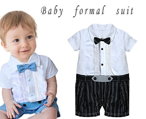 (グレードモリヤ) Grade moriya フォーマルベビー レース ブルー ブラック 2カラー 男の子 ロンパース 子供服 ボーイズ 男の子 キッズ 子供服 フォーマル 半袖 夏 半ズボン 入学式 卒業式 入園式 卒園式 結婚式 冠婚葬祭 発表会 蝶ネクタイ (95, ブラック)