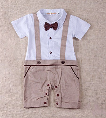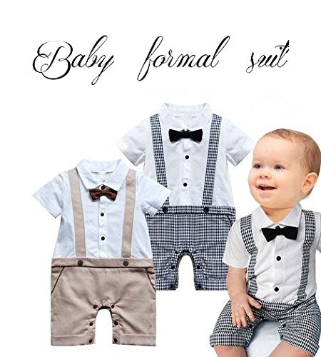 (グレードモリヤ) Grade moriya 2カラー ブラウン チェック フォーマルベビー ロンパース 子供服 ボーイズ 男の子 キッズ 子供服 フォーマル 半袖 夏 半ズボン 入学式 卒業式 入園式 卒園式 結婚式 冠婚葬祭 発表会 蝶ネクタイ (95, ブラウン)