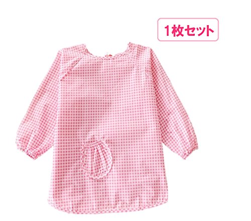 (グレードモリヤ)Grade moriya 子供 エプロン 3色 100cm 子供 キッズ 長袖 スモック 男の子 女の子 幼稚園 保育園 洗い替え幼児 子供服 お食事用 スモック 幼稚園キッズ (ピンク1枚)