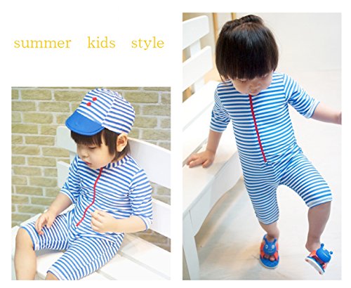 (グレードモリヤ) Grade moriya 子供服 水着 ボーダー ストライプ 初めてでも安心の3点セット★ 水着 男の子 マリンスタイル ボーダー柄 水着 ゴーグル セット スイミングセット 水泳 プール 男の子 女の子 サマー スイミング (110)