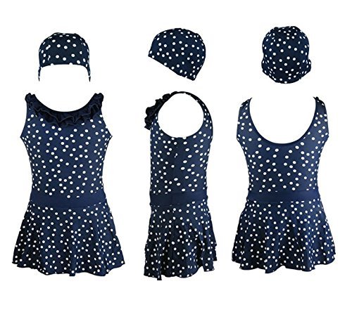 • ドット柄ワンピース水着に帽子とゴーグルがセット!!!