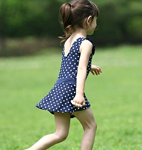 (グレードモリヤ) Grade moriya 水玉スイムワンピース ガールズ 水着 ワンピース アメリカン 水玉ワンピース ベビー 水着 フリル ビキニ ドット柄 (130-140㎝)