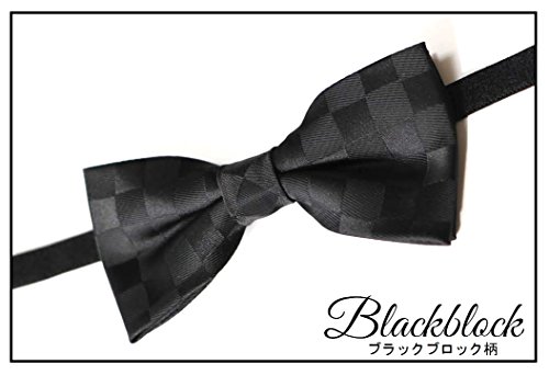 【グレードモリヤ】Grade moriya 蝶ネクタイ ボウタイ 子供 キッズ ベビー フォーマル蝶ネクタイ (ブラック(ブロック柄))