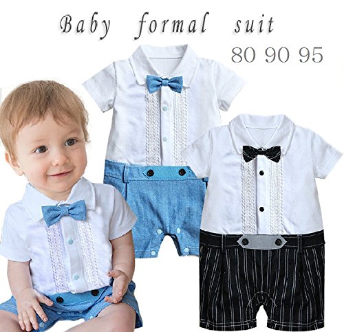 (グレードモリヤ) Grade moriya フォーマルベビー レース ブルー ブラック 2カラー 男の子 ロンパース 子供服 ボーイズ 男の子 キッズ 子供服 フォーマル 半袖 夏 半ズボン 入学式 卒業式 入園式 卒園式 結婚式 冠婚葬祭 発表会 蝶ネクタイ (90, ブラック)
