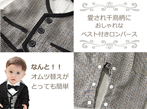 (グレードモリヤ) Grade moriya チェックベスト フォーマルスーツ セット 男の子 ベビー ロンパース 子供服 ボーイズ 男の子 キッズ フォーマルスーツ セット 入学式 卒業式 入園式 卒園式 結婚式 冠婚葬祭 発表会 出産祝い プレゼント 蝶ネクタイ 男の子 スーツ キッズスーツ キッズ ブラック フォーマル お宮参り スーツ お出かけ 記念撮影に★ (70)