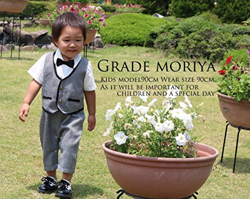 (グレードモリヤ) Grade moriya チェックベスト半袖 フォーマルスーツ セット 男の子 ベビー ロンパース 子供服 ボーイズ 男の子 キッズ フォーマルスーツ セット 入学式 卒業式 入園式 卒園式 結婚式 冠婚葬祭 発表会 出産祝い プレゼント 蝶ネクタイ 男の子 スーツ キッズスーツ キッズ ブラック フォーマル お宮参り スーツ お出かけ 記念撮影に★ (90)