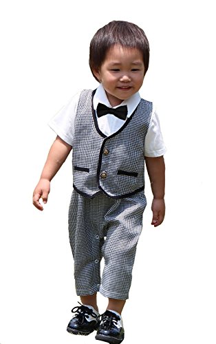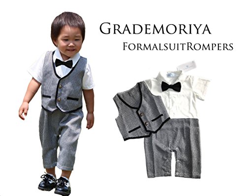 (グレードモリヤ) Grade moriya チェックベスト半袖 フォーマルスーツ セット 男の子 ベビー ロンパース 子供服 ボーイズ 男の子 キッズ フォーマルスーツ セット 入学式 卒業式 入園式 卒園式 結婚式 冠婚葬祭 発表会 出産祝い プレゼント 蝶ネクタイ 男の子 スーツ キッズスーツ キッズ ブラック フォーマル お宮参り スーツ お出かけ 記念撮影に★ (80)