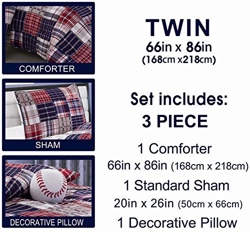 3 Piece Baseball Sports Theme Plaid Red, White and Blue Comforter Set Twin Size Bedding. Works well in your bedroom, Master Room, Boys, Girls, Guest Room and College Dormitory, Great Gift Idea. [並行輸入品]