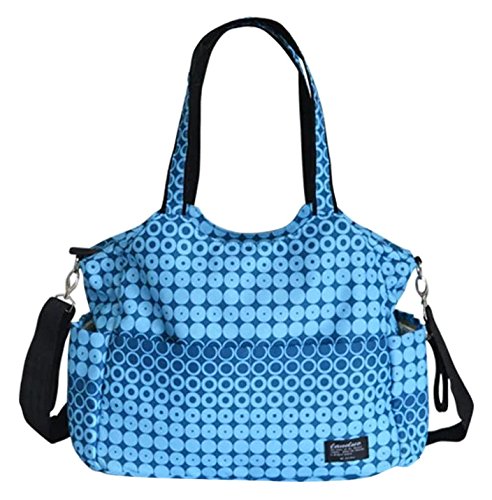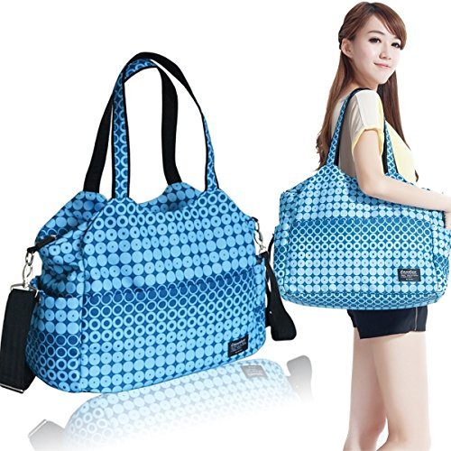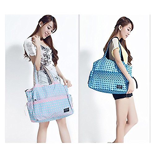 【Grandir】 大容量 3way マザーズバッグ ドット柄 の 水玉 が おしゃれ で かわいい ママバッグ 防水 軽量 多機能 中身 も 大容量 な 3WAY トートバッグ 便利な ベビーカー用さげベルトとショルダーベルト付属 授乳 選べる お出かけ 行楽シーズン 海へ山へ アウトドア (ブルー)