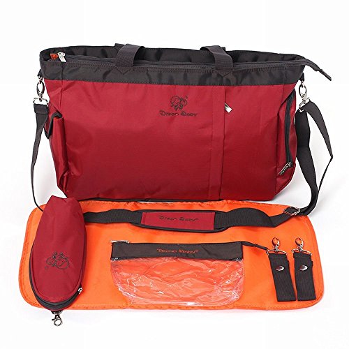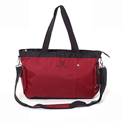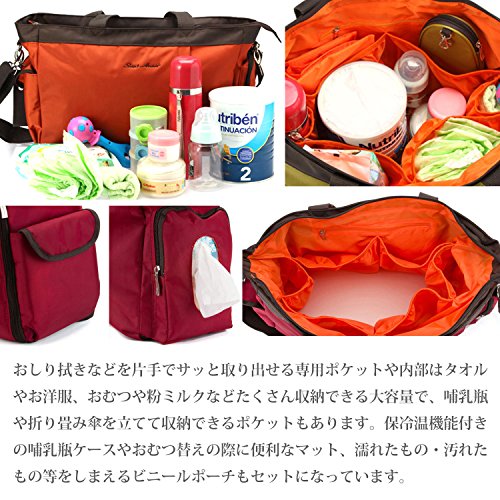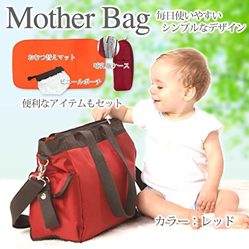 【Grandir】 マザーズバッグ 大容量 ナイロン 保冷 温機能付き 哺乳瓶 ケース オムツ替えマット ポーチ付き 全3色 (レッド)