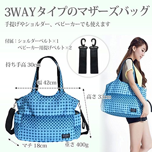 【Grandir】 マザーズバッグ ドット柄 水玉 大容量 3way ママバッグ 全4色 (ブルー)