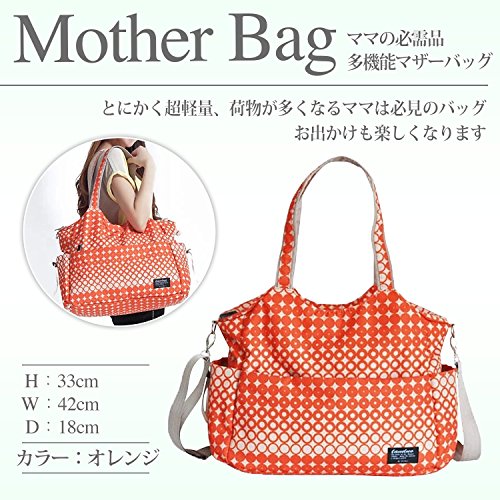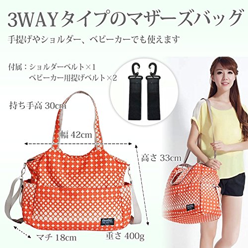【Grandir】 マザーズバッグ ドット柄 水玉 大容量 3way ママバッグ 全4色 (オレンジ)