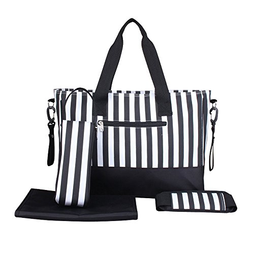 【Grandir】 マザーズバッグ ストライプ柄 大容量 多機能 2way 全2色 (白/黒)