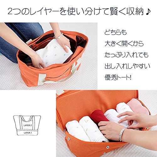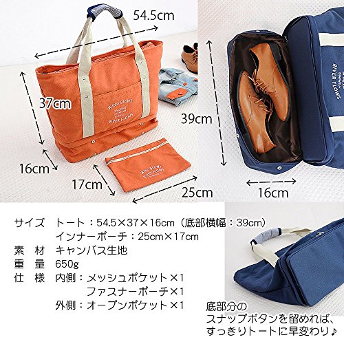 【Grandir】 マザーズバッグ トートバッグ キャンパスバッグ シンプル 軽量 全4色 (オレンジ)