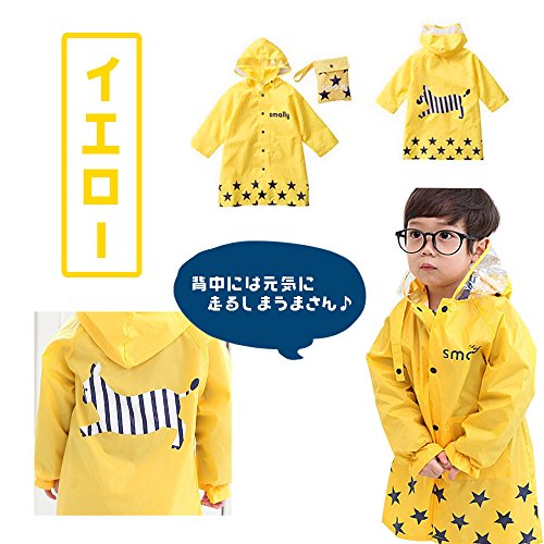 【Grandir】 キッズ 子供用 レインコート レインウェア レインポンチョ かっぱ 専用ポーチ付き 全3色 (S, イエロー)