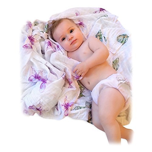 These beautiful butterfly receiving blankets are large 47 X 47 perfect for newborns, but also have multi use for nursing, stroller shade, diaper change mat, burp cloth and much more;100% breathable cotton muslin open weave, ensures your baby will not overheat. Wash in mild detergent, the swaddle blankets will get softer every wash;Your beautifull receiving blankets come with full instructions in my free Ebook which not only tells you how to swaddle but offers lots of tips for the new mom.;Each specially designed gift box contains 4 receiving blankets with exclusive unisex butterfly design making this the perfect gift for new moms.;Made in China
