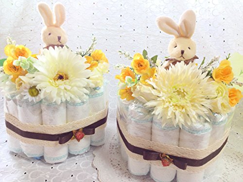- オムツと造花やマスコットは直接触れない様に付けています。