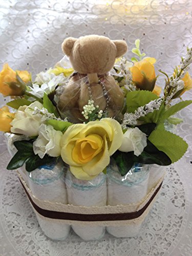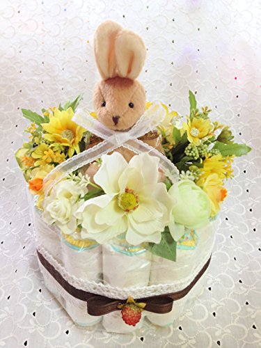 おむつケーキ 1段 男女兼用 黄色 Happy yellow 3500 (はじめての肌へのいちばんSサイズ)