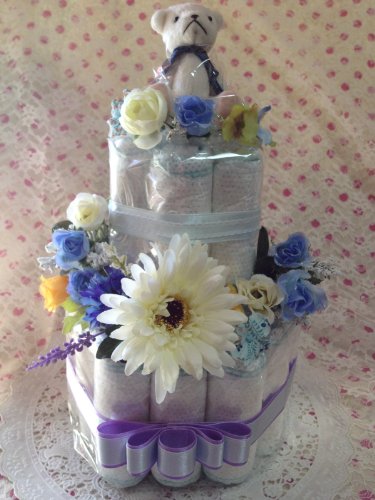 おむつケーキ 2段 出産祝い センスが良い結婚祝 男の子 ブルー