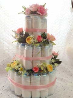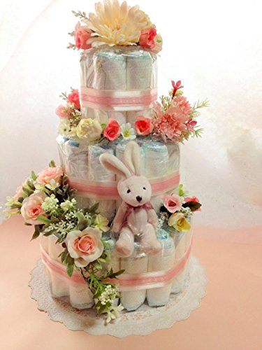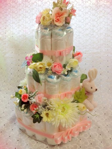 写真は一例ですがイメージはほとんど変わりません お花の入荷によりまったく同じ商品にはなりません 世界にたった一つのおむつケーキです。 (お花は造花ですので取り外しお好きなように再利用して頂けます。)