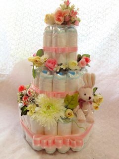おむつケーキ3段 (S 63, pink)