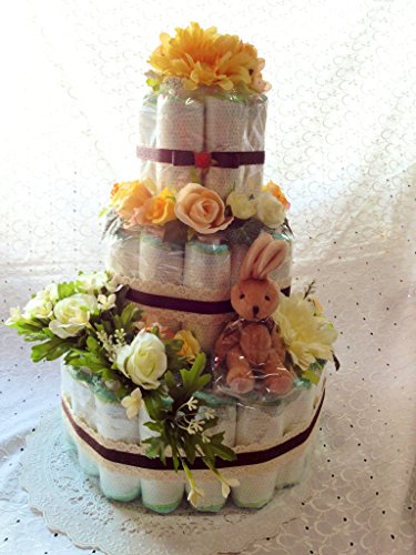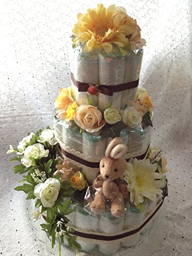 写真は一例ですがイメージはほとんど変わりません お花やマスコットは入荷によりまったく同じ商品にはなりません 世界にたった一つのおむつケーキです。 (お花は造花ですので取り外しお好きなように再利用して頂けます。)