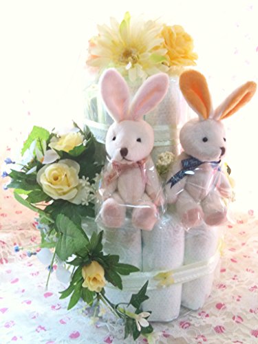 - パンパースSサイズ26個を個装、マスコットを2つ(ベア又はうさぎ)とお花を多数アレンジ